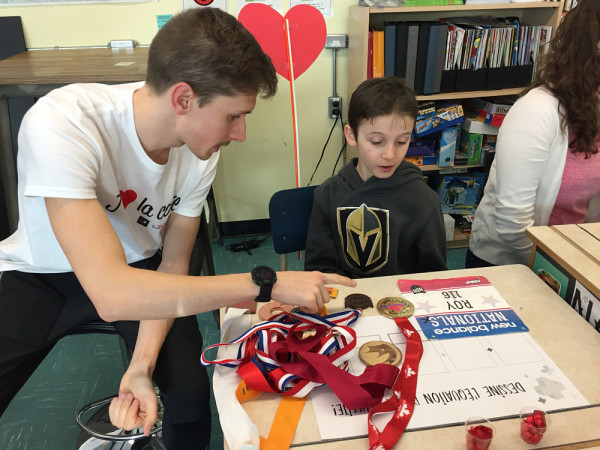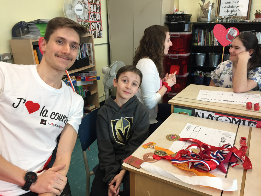 Adam est un élève de 5e année qui a bien de la chance! Pour une période de quelques semaines, il est jumelé à Jérémie, un étudiant-athlète du Vert et Or de l’UdeS, avec lequel il correspond et participe à différentes activités pédagogiques.