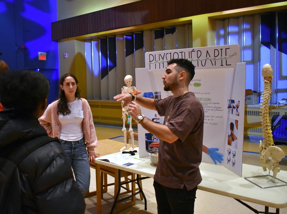 Des animatrices et animateurs ont notamment montré aux jeunes des manœuvres d’examen physique et discuté avec eux des mythes et réalités entourant les professions et les études en sciences de la santé.