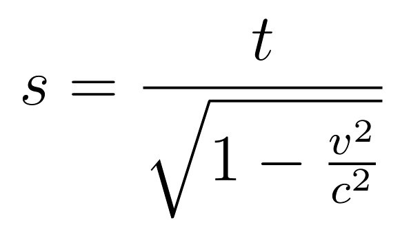 Supposons qu'un astronaute est à bord de la station spatiale internationale, qui voyage, grosso modo, à v = 27 720 km/h (c'est-à-dire environ 7 700 m/s). Lui et le centre de contrôle de Houston démarrent tous les deux leur chronomètre hyper précis. Au bout de t = 365,24219879 jours (une année astronomique, ou encore 31 556 925,98 secondes), l'astronaute demande à Houston de lui donner la lecture du chronomètre resté sur Terre. Celui-ci indiquera alors s = 31 556 925,99 secondes. Le contrôleur à Houston aura donc vieilli d'un centième de seconde de plus que l'astronaute à bord de la station spatiale, comme si l'astronaute avait voyagé dans le futur d'un centième de seconde. Tout cela est régi par l'équation ci-contre où c = 299 792 458 m/s est la vitesse de la lumière.