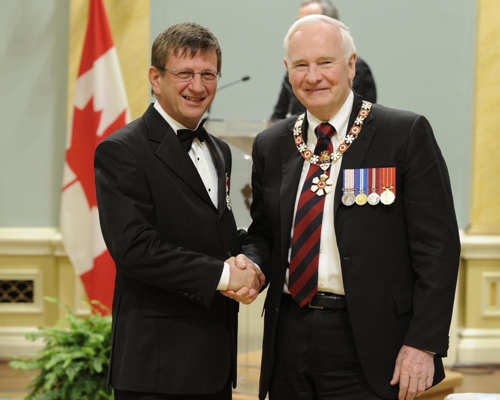 Le professeur Aurel Schofield, en compagnie du gouverneur général du Canada, David Johnston