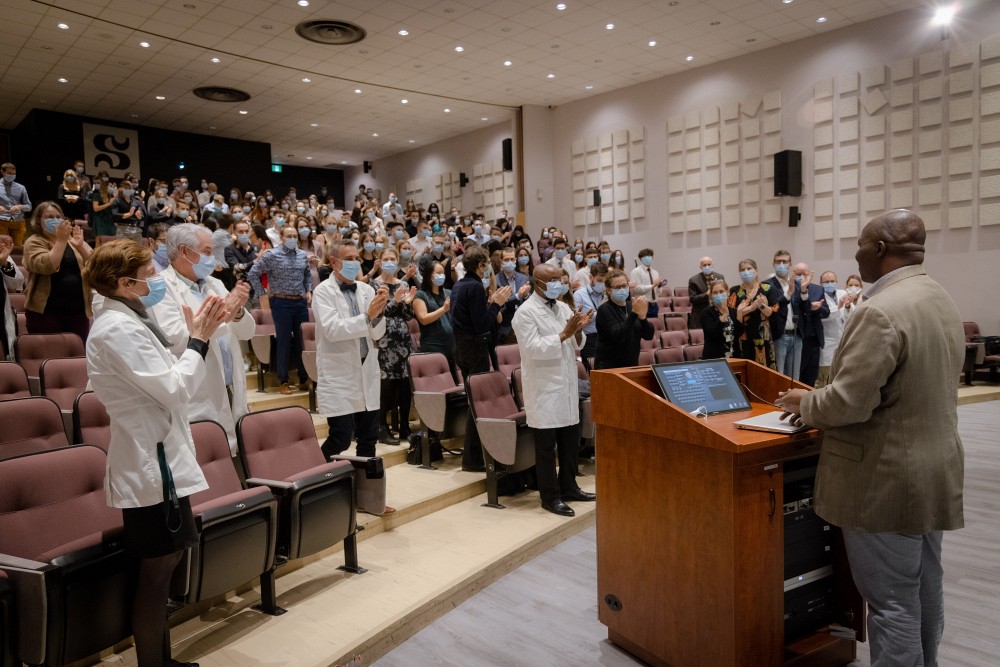 La cohorte 2024 du programme de médecine l’a d’ailleurs choisi pour prononcer la conférence annuelle Brigitte-Perreault, portant sur l’humanisme, dans le cadre de la cérémonie de consécration au professionnalisme et à l'externat de novembre dernier.