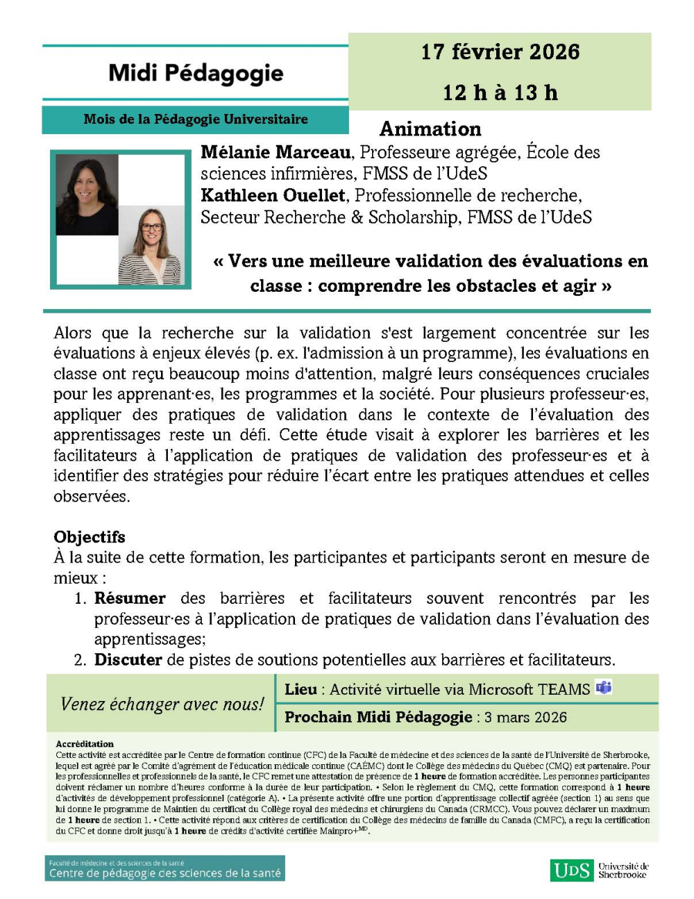 Kathleen Ouellet, Professionnelle de recherche, Centre de pédagogie des sciences de la santé, FMSS de l’UdeS