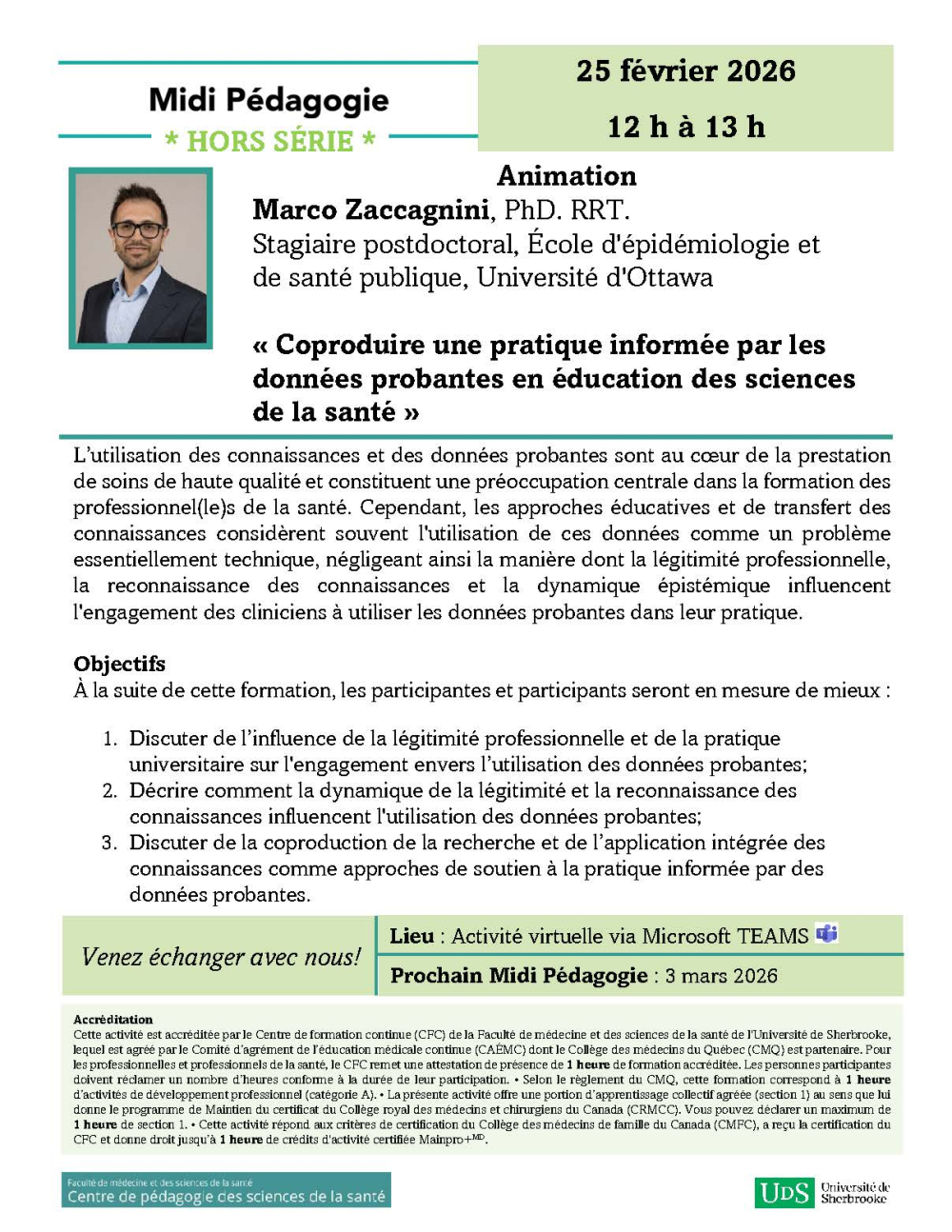 Midi Pédagogie du CPSS *hors série* : Coproduire une pratique informée par les données probantes en éducation des sciences de la santé