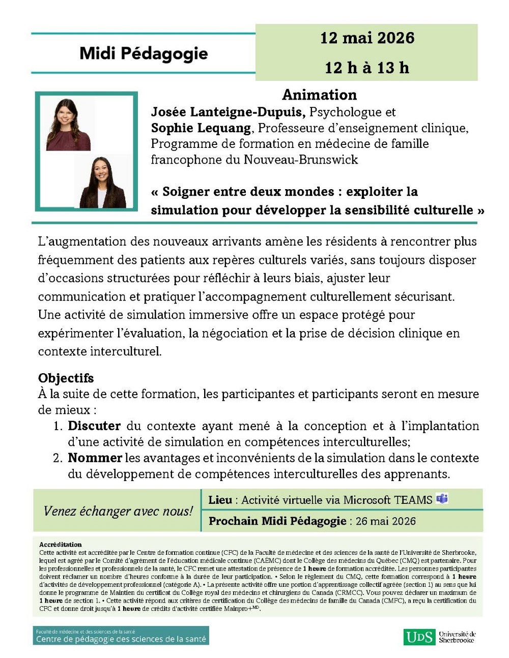 Midi Pédagogie du CPSS · Soigner entre deux mondes : exploiter la simulation pour développer la sensibilité culturelle