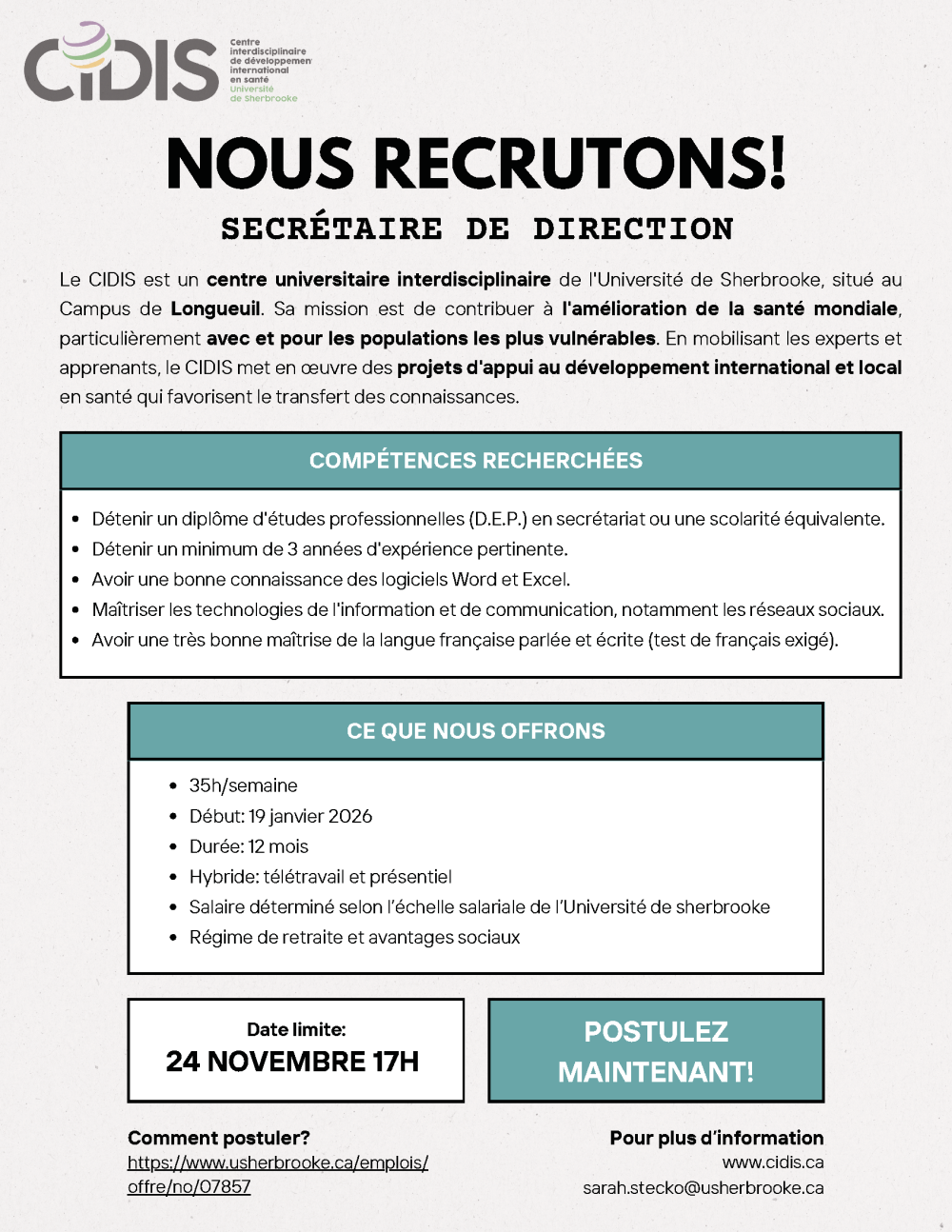 Pour postuler: https://www.usherbrooke.ca/emplois/offre/no/07857