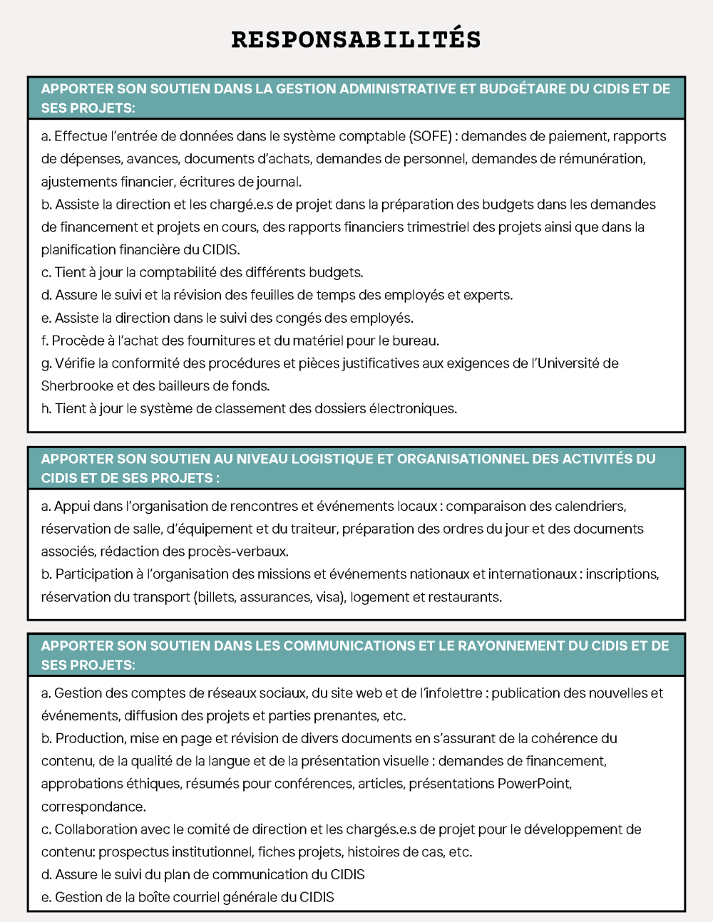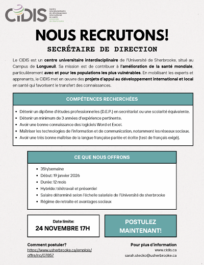 Offre d'emploi: Secrétaire de direction au CIDIS