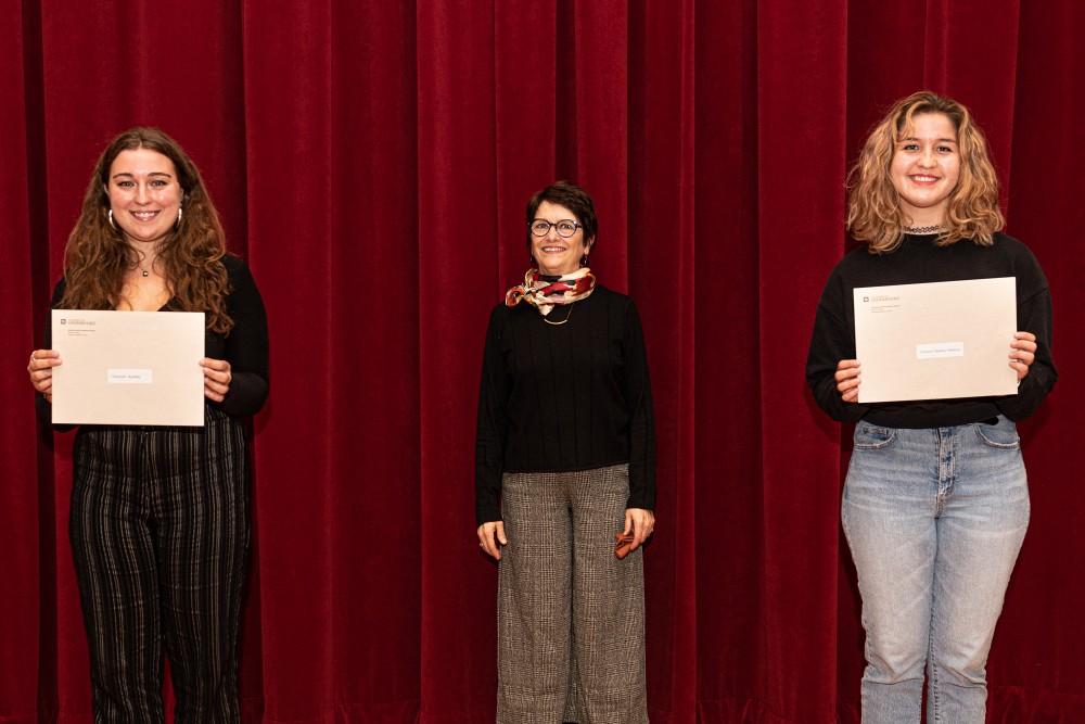 Finalement, Audrey Cloutier (500 $) et Rébecca Charland-Nadeau (500 $) ont reçu une bourse d’admission qui est remise aux candidates et aux candidats qui ont obtenu les meilleurs résultats lors des examens d’audition : les éléments évalués sont la prestation instrumentale ou le portfolio en composition et les examens théoriques.
