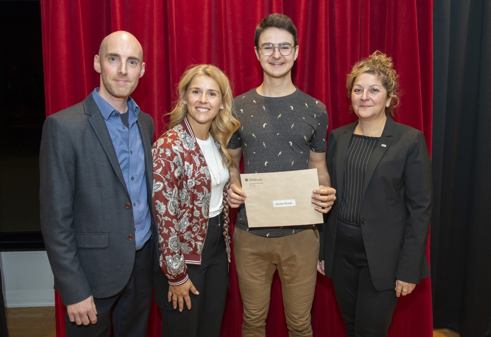Pr André Cayer, Mme Marie-Jérôme Dubois, gestionnaire en philanthropie de la Faculté des lettres et sciences humaine, Nicolas Plourde, récipiendaire de la bourse André et Maria Banderauk et Pre Anick Lessard.