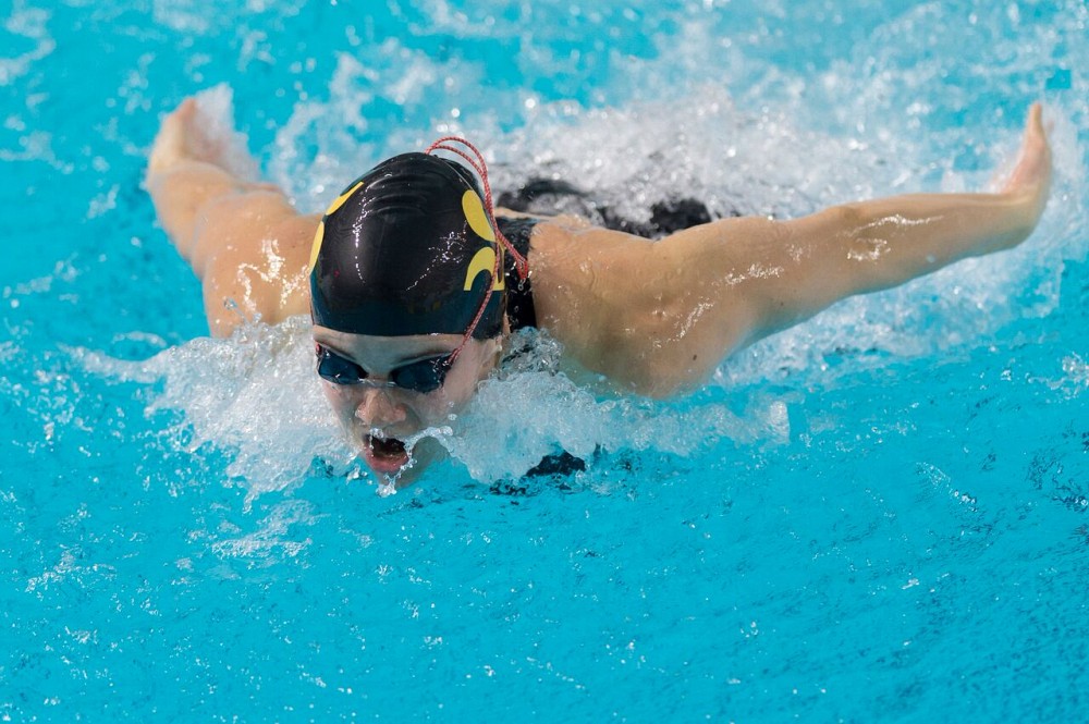 L’étudiante athlète en psychologie, qui a également nagé en 23e position au 100m libre lors de la dernière journée de compétition dimanche, détient maintenant les trois marques du Vert & Or au papillon.