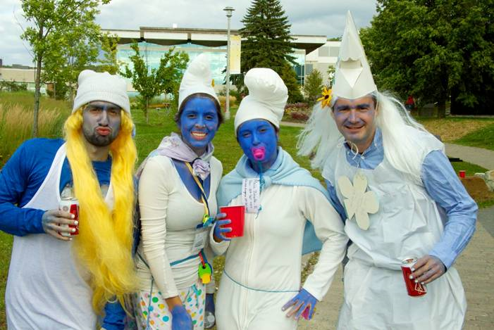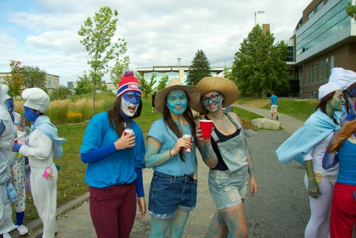 Le jeudi 28 août, accueil et initiation des nouvelles étudiantes et nouveaux étudiants du baccalauréat en orientation. Les Schtroumphs sont en vedette!