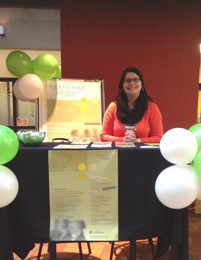 Émilie Lefrançois, répondante locale de PERFORMA, a profité de cet évènement auquel environ 180 enseignants ont participé pour faire connaître les programmes de PERFORMA et par la même occasion souligner ses 40 ans! Ce kiosque a permis à plusieurs membres du personnel de venir en apprendre davantage sur PERFORMA et pour certains d’entre eux d’envisager la poursuite de leurs études.