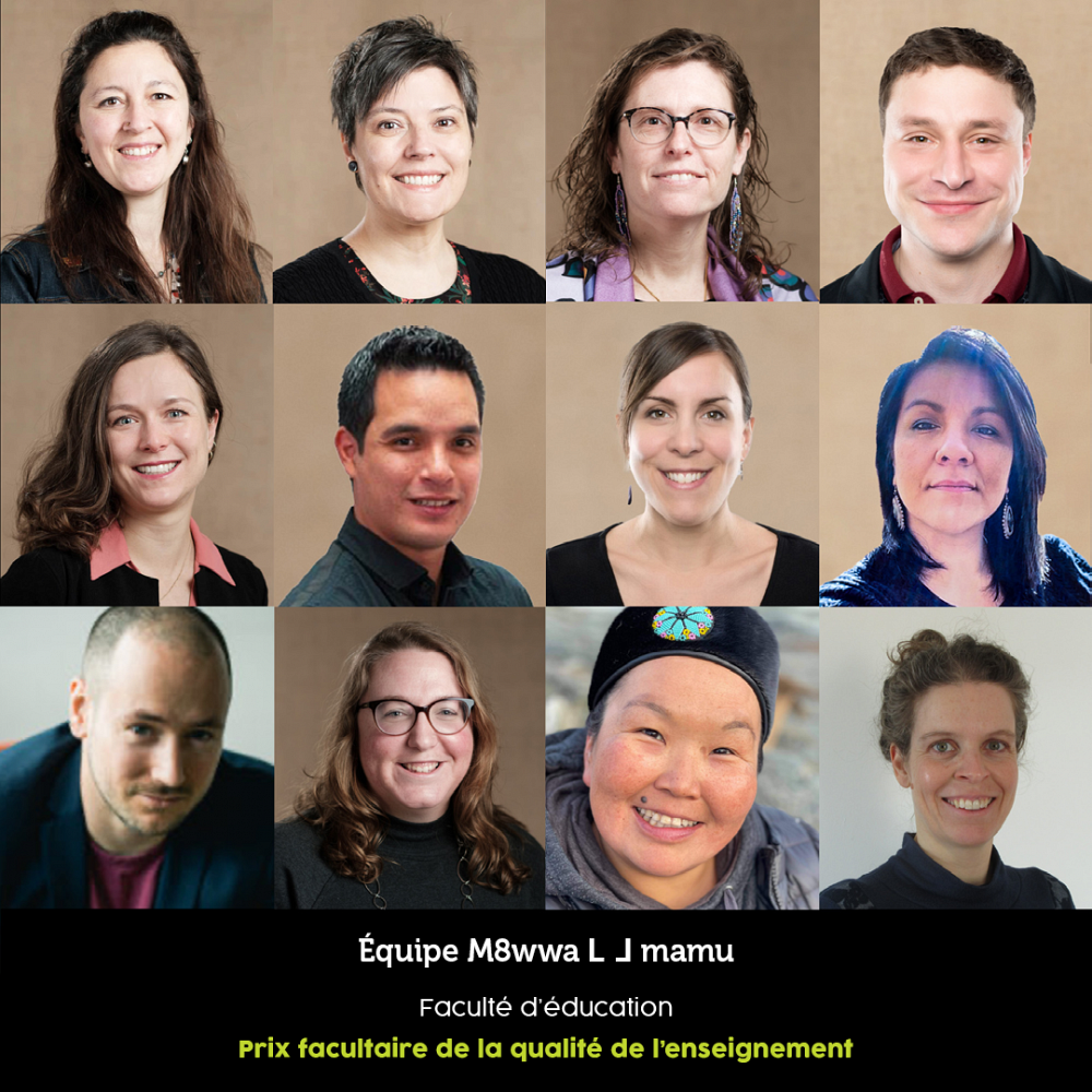 L’équipe M8wwa ᒪ ᒧ mamu, ce sont des personnes engagées pour sensibiliser et soutenir les différentes instances de la Faculté d’éducation vers l’inclusion des réalités/savoirs/perspectives autochtones dans la formation à l’enseignement par une démarche collaborative basée sur le respect et la réciprocité des partenaires autochtones. Rassemblant des membres de la communauté facultaire et des partenaires autochtones, l’équipe s’est mobilisée, et les résultats sont tangibles : un cours novateur sur les perspectives autochtones en éducation, des activités d’une intensité et d’une qualité remarquables et des actions transversales qui rejaillissent sur l’ensemble de la Faculté d’éducation et de l’UdeS.