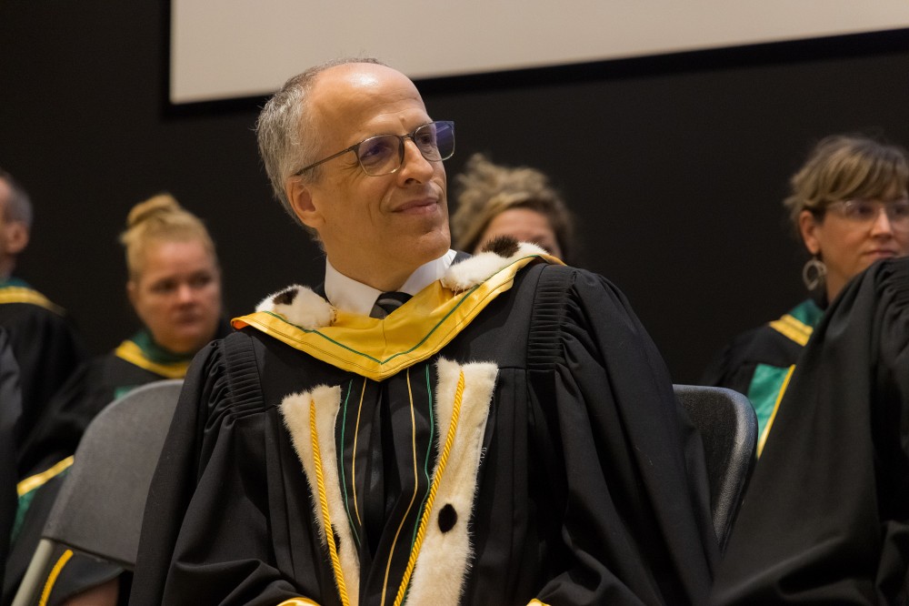 De passage sur notre campus pour livrer une conférence, le généticien et zoologiste de renom a chaleureusement accepté d’intégrer la grande famille UdeS en recevant un doctorat honoris causa institutionnel.