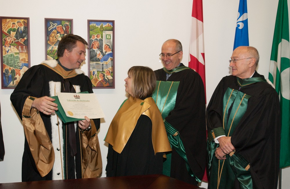 En 2006, elle a d’ailleurs été au cœur de l’évolution de la formule de la collation des grades et de la création du rituel d’investiture de l’UdeS. Tout en comptant sur la collaboration de nombreux collègues, Louise a été l’épine dorsale qui a permis à l’UdeS de créer un événement unique, grandiose et signifiant pour les personnes diplômées et leurs proches. Avec une capacité d’accueil de plus de 10 000 personnes et en tenant compte des aléas de la météo et des particularités de l’ensemble des facultés, cet événement constitue un véritable tour de force. Il fait aujourd’hui partie de l’ADN de notre université humaine.
