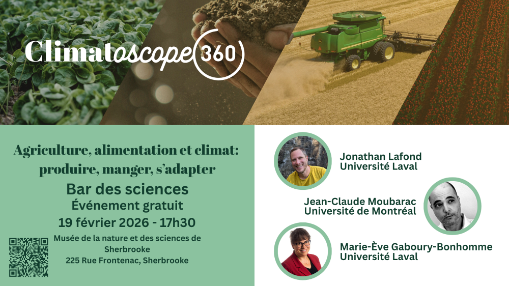 L’événement se déroulera le 19 février 2026 au Musée de la nature et des sciences de Sherbrooke (MNS2) à partir de 18h00 (les portes ouvrent à 17h30). Événement gratuit et ouvert à tous et toutes, peu importe votre niveau de connaissances en changements climatiques ou en agriculture.