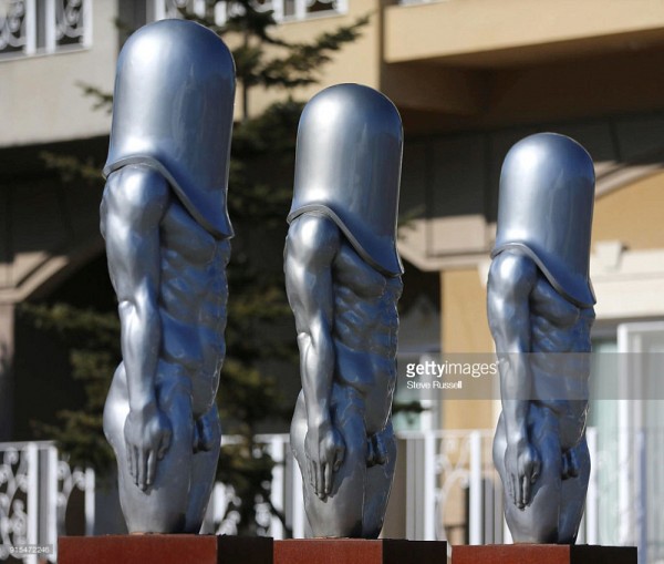 Depuis le début de la compétition à PyeongChang, trois statues attirent l'attention de la foule et des photographes. Ces Bullet Men (hommes canons) rappellent les statues grecques de Kouroi (jeunes hommes) par leur posture et les détails anatomiques réalistes mais parfaitement développés. Leur tête recouverte par un casque futuriste évoque la vitesse et les risques que prennent les athlètes, mais aussi transforme ces statues en gigantesques hommes-phallus. Hermès, souvent représenté par un phallus dans la statuaire grecque, était l'un des principaux dieux invoqués lors des jeux olympiques (avec Éros et Zeus).