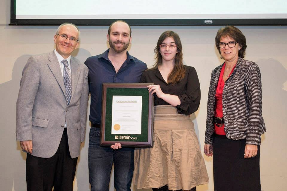 Photo, dans l'ordre habituel : Martin Buteau, vice-recteur à la vie étudiante, Alexis Reymbaut, Sophie Dufour-Beauséjour et Luce Samoisette, rectrice.