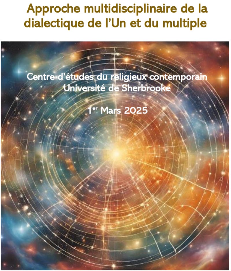 La diversité de champs et de disciplines ayant abordé ou exploré la dialectique de l’Un et du multiple montre l’importance et la richesse de cette thématique de recherche, offrant des perspectives variées et profondes sur la complexité du monde et de l’expérience humaine de la transcendance. En explorant ce thème de façon multidisciplinaire, il est possible de mieux comprendre les interconnexions entre l’unité et la diversité de même que ses déclinaisons dans de nombreux domaines de la connaissance. De quelle façon cette dialectique peut-elle être explorée dans les sociétés contemporaines ? Comment renouveler les approches qui s’y intéressent ? Y a-t-il de nouveaux cadres théoriques ou de nouveaux champs de pratique qui peuvent, dans une époque de modernité avancée, s’avérer utiles pour mieux la comprendre ? Cette dialectique s’avère-t-elle simplement une méthodologie pouvant servir à explorer les méandres de la pensée humaine ? Relève-t-elle de quelque chose de plus essentiel ? Les collaborateurs et collaboratrices à cette journée d’études, organisée par Hanaa Sfeir (professeure à temps partiel à l’Université St-Paul d’Ottawa) et Raphaël Mathieu Legault-Laberge (professeur associé au CERC), exploreront ces questions.