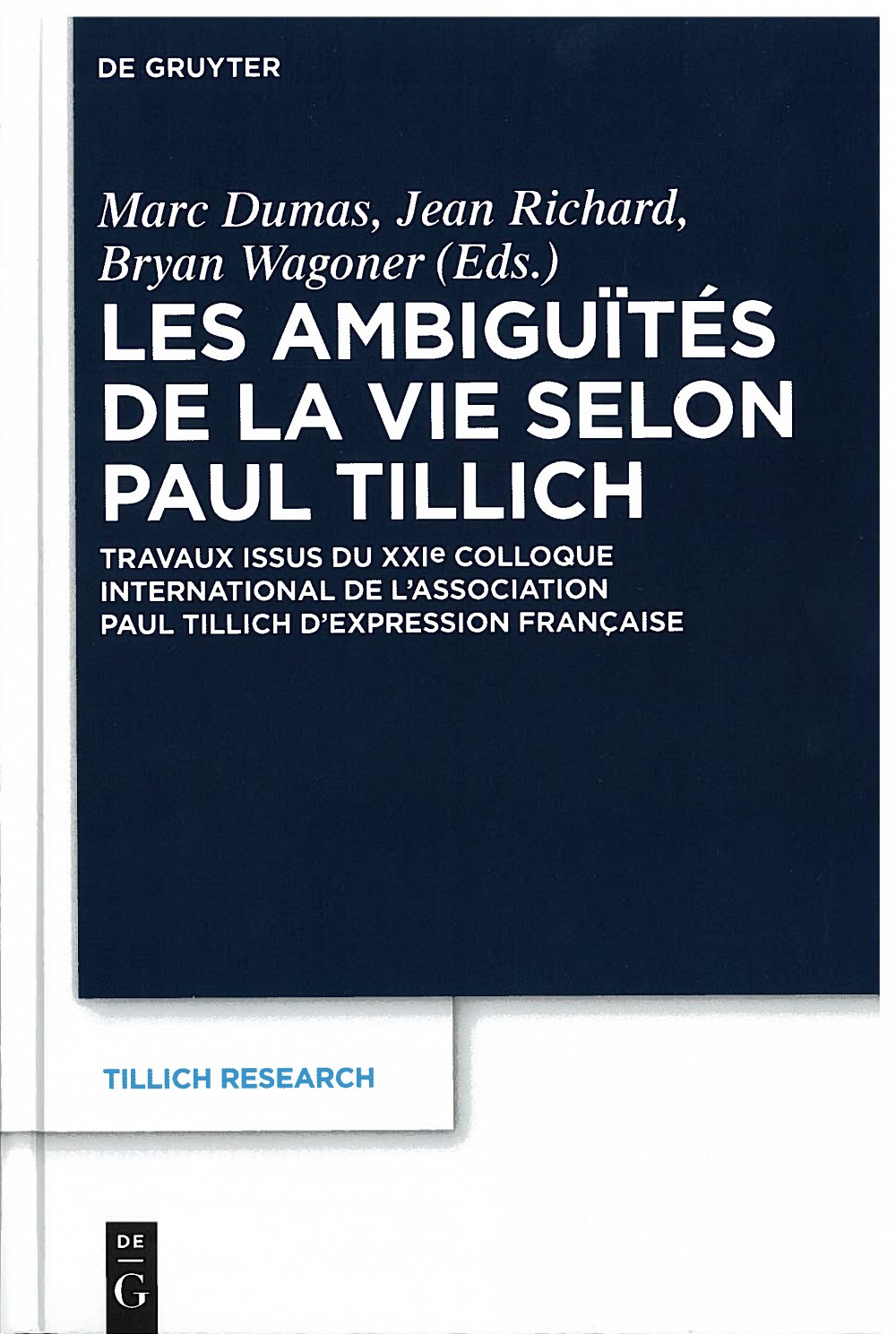 Sous la direction de Marc Dumas, Jean Richard et Bryan Wagoner, le neuvième volume de la collection « Recherches sur Tillich » vient de paraître chez De Gruyter. Ce collectif contient la majorité des travaux issus d’un colloque qui s’est tenu en août 2015 sur le campus principal de l’Université de Sherbrooke. Ses auteurs sont tant des spécialistes reconnus au niveau international que des jeunes chercheurs travaillant la pensée et l’œuvre de Paul Tillich, ce théologien-philosophe germano-américain ayant vécu au XXe siècle (1886-1965).