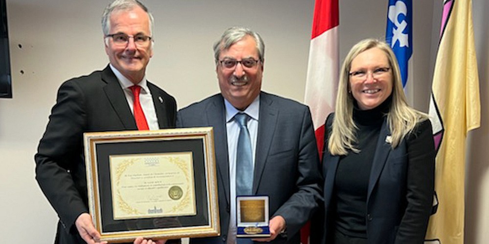Guy Ouellette député pour Chomedey, conjointement avec la députée Francine Charbonneau des Mille-Îles ont remis, en guise de reconnaissance, au professeur Sami Aoun la médaille de l’Assemblée nationale afin de souligner ses réalisations et contributions à la communauté sociale et éducative québécoise.