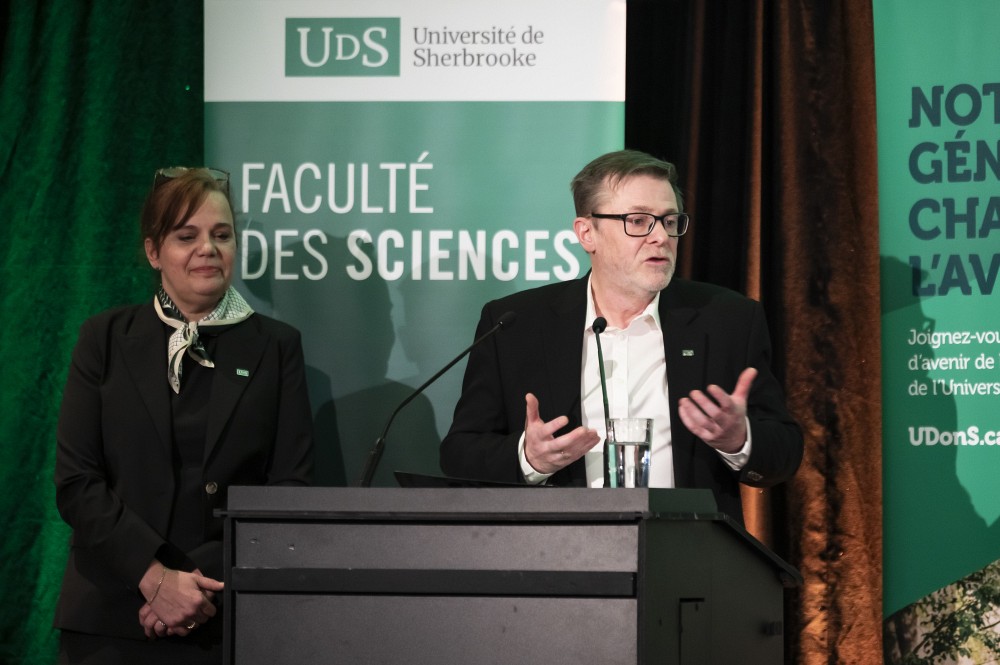 Les prises de parole de la soirée ont aussi permis aux personnes présentes d’entendre le doyen de la Faculté des sciences, Pr Armand Soldera, qui a rappelé que le geste de donner ressemble à celui d’enseigner. « Donner une bourse, c’est bien sûr un geste de grande générosité. Mais ce soir, vous allez aussi récolter. Vous vous préparez à découvrir votre propre lot de récits – dont la plupart ne sont pas encore écrits! », a-t-il déclaré à l’intention des donatrices et donateurs.
