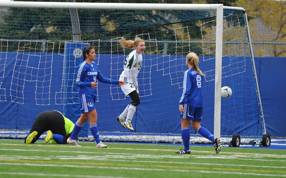 Pour une deuxième fois en autant de jours, le Vert & Or de l’Université de Sherbrooke est venu jouer les trouble-fêtes au Cepsum de l’Université de Montréal. Après la spectaculaire remontée de l’équipe de football samedi, c’est l’équipe féminine de soccer qui est venue jeter une douche froide sur les partisans des Carabins, en l’emportant 2 à 0 en finale du circuit universitaire québécois, dimanche matin. Les Sherbrookoises ont du même coup mis la main sur un premier titre provincial en 25 ans!