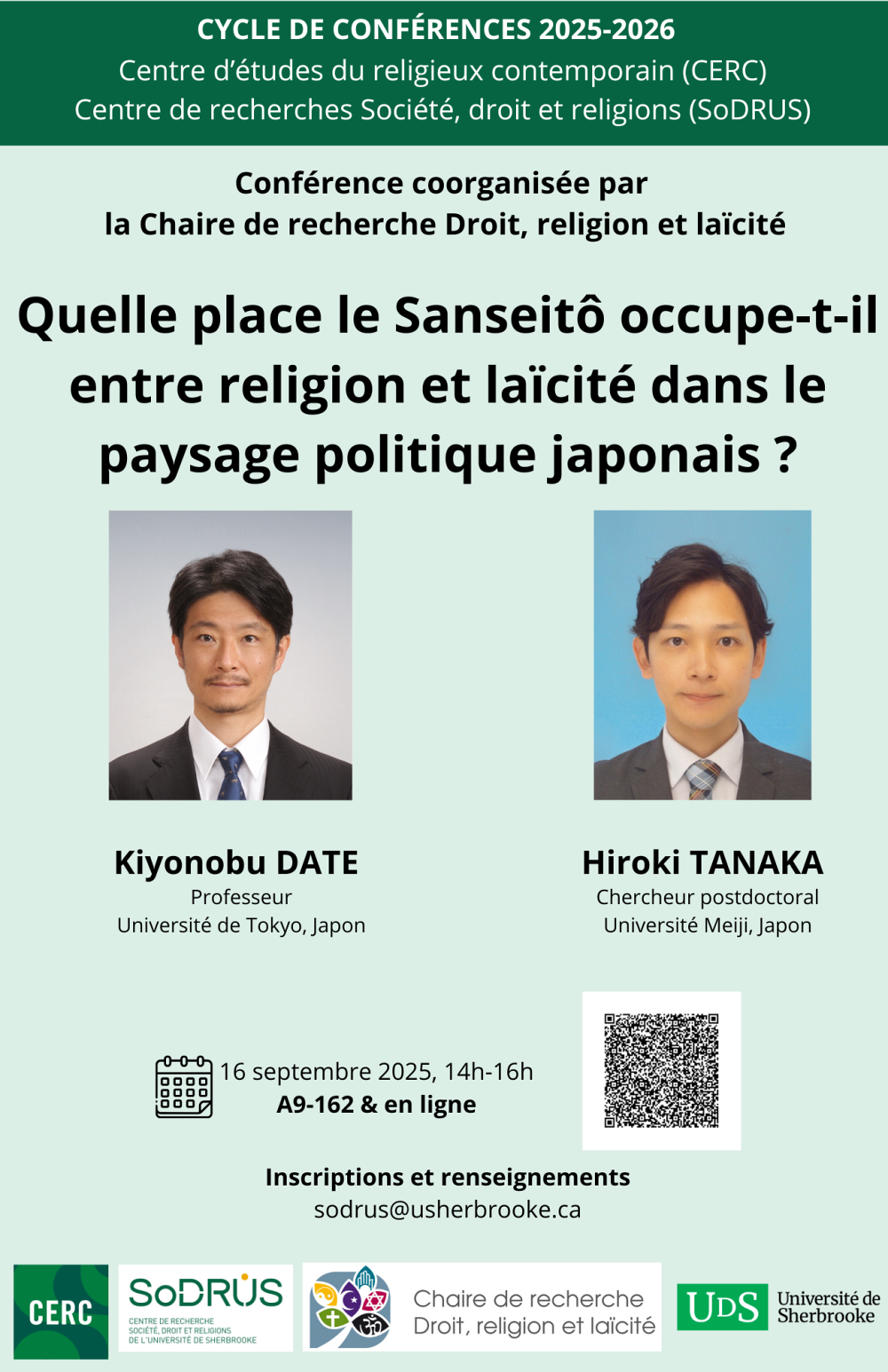 Kiyonobu DATE est professeur au Département des études aréales de l’Université de Tokyo. Ses recherches portent sur les rapports entre la laïcité et le religieux en France, au Québec et au Japon. Parmi ses travaux, mentionnons : « La laïcité de reconnaissance s’enracine-t-elle au Japon ? », Diversité urbaine, Vol.13, n°1, 2013 ; « Trajectoire de la laïcité au Québec au miroir du Japon », dans David Koussens, Jean-François Laniel et Jean-Philippe Perreault dir., Étudier la religion au Québec : Regards d’ici et d’ailleurs, Québec, Presses de l’Université Laval, 2020 ; Une autre laïcité : Parcours de l’interculturalisme et du religieux au Québec, Tokyo, Iwanami, 2024 (en japonais).