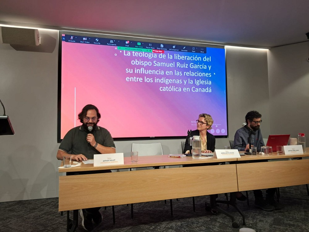 Du 20 au 23 octobre 2025 s’est tenu le quatrième séminaire « Catholicisme, politique et société en Amérique latine contemporaine » du réseau d’histoire du catholique au XXe siècle. Plus de 20 présentations scientifiques ont été données par des chercheurs de neuf pays différents. Yves Solis, un des organisateurs de ce congrès et un chercheur partenaire au SoDRUS y a invité Anthony Nollet, étudiant au doctorat en histoire de l’Université de Sherbrooke sous la direction de Maurice Demers. Anthony, qui est aussi étudiant chercheur au SoDRUS, a présenté les résultats de ses recherches de maîtrise dans une conférence intitulée « La théologie de la libération de l’évêque Samuel Ruiz Garcia et ses influences sur les relations entre les Autochtones et l’Église catholique au Canada ».