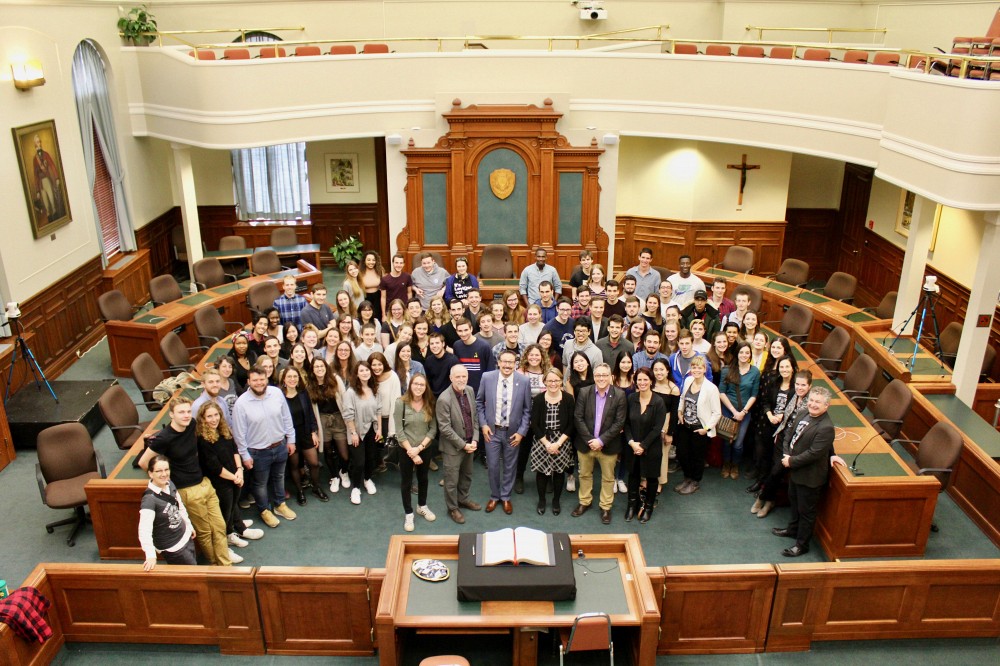 Plus de 80 étudiantes et étudiants internationaux se sont réunis le 12 avril, à l’invitation de la Ville de Sherbrooke et de l’Université de Sherbrooke, afin d’honorer leur parcours universitaire et personnel. La cérémonie tenue dans la salle du conseil à l’hôtel de ville a donné l’occasion à chacun d’entre eux de signer le Livre d’or de la Ville de Sherbrooke. Un geste symbolique qui concrétise leur apport à la vie universitaire et citoyenne de Sherbrooke.