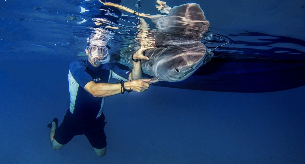 «En plus du travail quotidien de prise de données dans les enclos temporaires où avaient lieu les expériences comportementales, j’ai eu la chance d’aller en mer pour faire du suivi à plus long terme, poursuit l’étudiant avec un sourire contagieux. Nous avons attrapé des requins adultes (requins citron, tigre, bulldog et à pointes noires) pour ainsi pouvoir prendre des mesures morphologiques et génétiques (échantillon d’ADN) et de leur fixer une étiquette unique afin qu’ils puissent être identifiés lors d’éventuelles captures. Une fois les mesures prises, les requins étaient rapidement relâchés à la mer.»