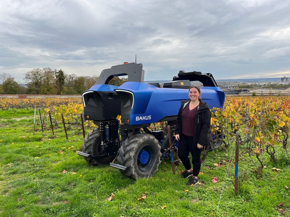 Pénélope a choisi l’entreprise française Vitibot. Elle a été interpellée par la conception et la production de robots enjambeurs viticoles électriques et autonomes. Ces robots permettent de limiter le tassement du sol et ils protègent la biodiversité. Vitibot est située dans la région de Reims en France et regroupe une cinquantaine d’employées et d’employés.« L’environnement de travail est très convivial et agréable ! Mon superviseur et mes collègues sont très ouverts pour répondre à mes questions », ajoute-t-elle.