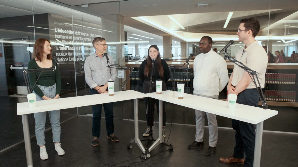 Explorons les impacts, les défis et les résultats des projets entrepreneuriaux réalisés lors de stages. Ariane Lemoine, du baccalauréat en administration des affaires, cheminement spécialisé en entrepreneuriat, William Leclerc, du baccalauréat en génie mécanique et représentant d’Innovaplant, Emmanuel Kambi Kashindi, du Service des stages et du développement personnel (SSDP) ainsi que Jacques Cloutier, de l’Accompagnateur entrepreneurial Desjardins (AED), nous partagent leurs expériences de collaboration en lien avec les stages coopératifs à l’UdeS et des projets étudiants développés au cours de ceux-ci. Apprenez-en plus sur le visage de l’entrepreneuriat à l’UdeS et sur les ressources universitaires qui accompagnent les personnes étudiantes.
