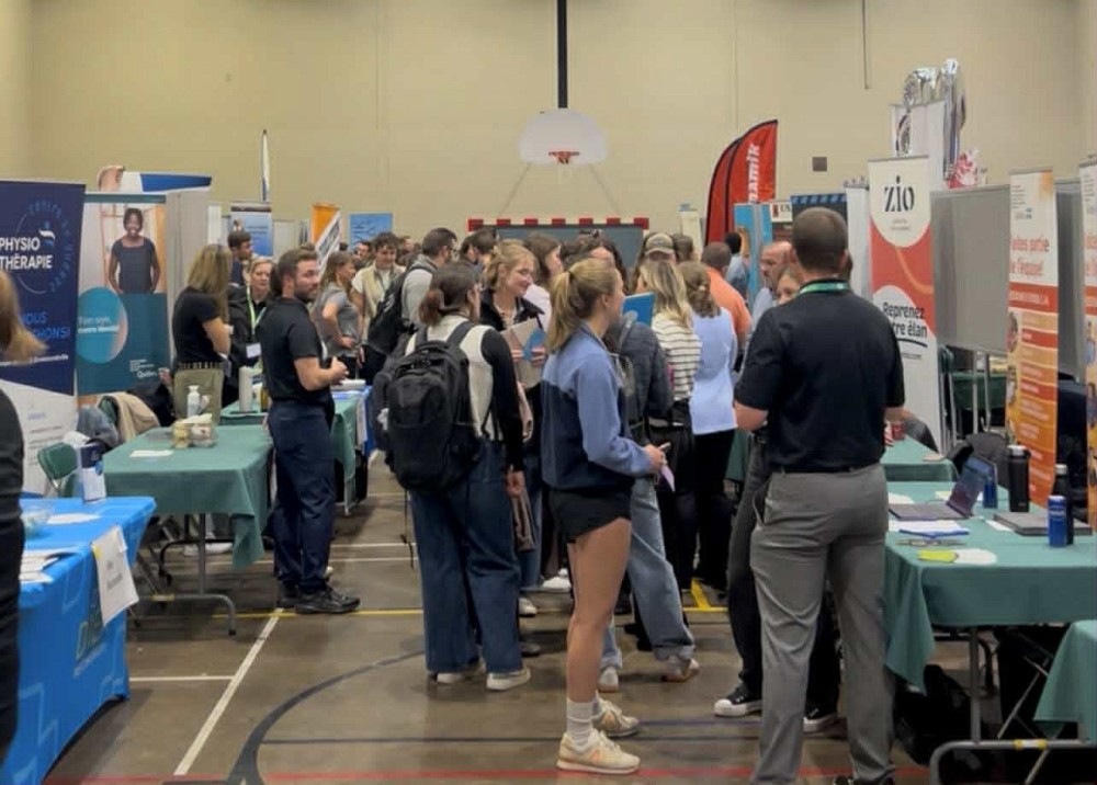 Le mardi 14 octobre 2025, le Centre sportif du Campus de la santé de l'Université de Sherbrooke a ouvert ses portes à la Soirée carrières en santé et services sociaux. Organisé par le Service des stages et du développement professionnel et l'École de réadaptation, cet événement étaient présenté par le Centre intégré de santé et de services sociaux des Îles. Cette rencontre étudiante, désormais bien ancrée dans la vie universitaire, a pour objectif de rapprocher la relève à son milieu professionnel. Tout au long de la soirée, les participantes et participants ont pu échanger directement avec des employeurs issus de divers secteurs de la santé tels que la physiothérapie, l'ergothérapie, la kinésiologie, les sciences infirmières et les services sociaux.