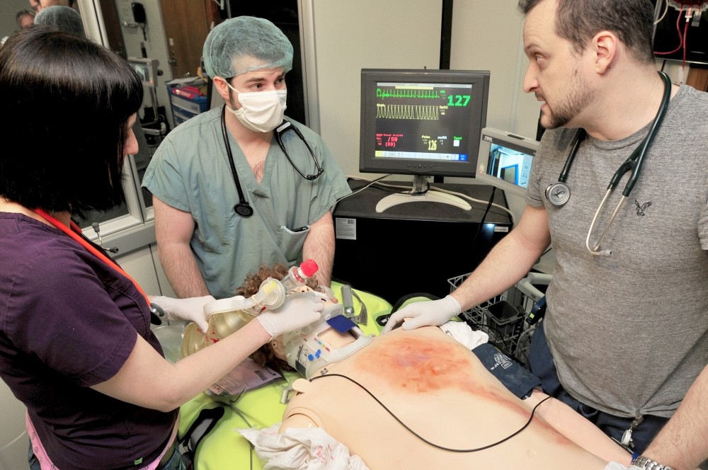 - les simulations de type procédural, qui visent l’acquisition de gestes techniques. Elles sont réalisées sur du matériel adapté, appelé task trainer. Les modèles utilisés, qui répliquent généralement des partie du corps, permettent de pratiquer à répétition des gestes ou procédures;