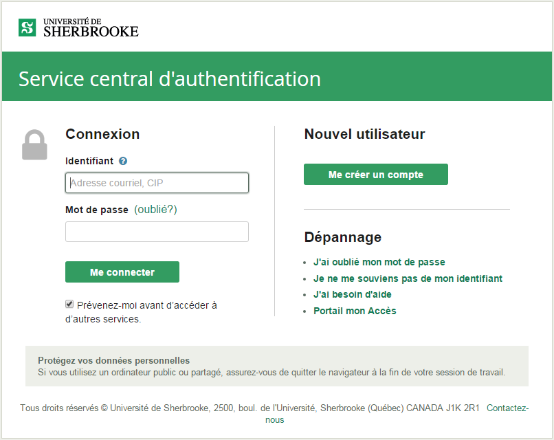 L’interface d’authentification aux services informatiques sécurisés de l’Université (Service central d’authentification) subira quelques changements à compter du mardi 23 février.