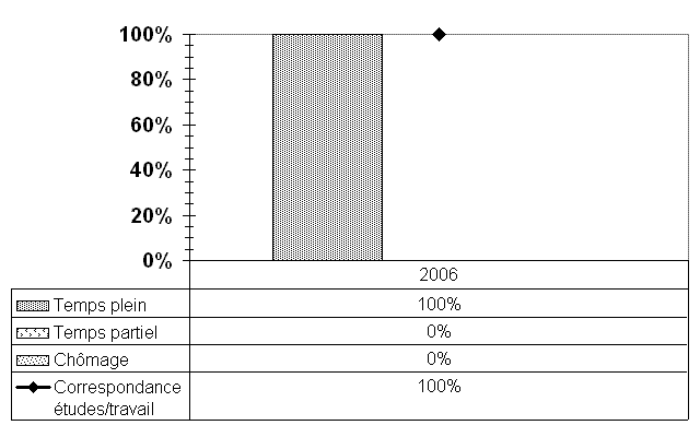 A l'instar de l'ensemble des programmes de sciences biologiques, la majorité des répondants du bac en microbiologie poursuivent leurs études après leur diplôme de 1er cycle (66,7 %). L'accès au marché du travail semble passer presque inévitablement par les études supérieures. D'ailleurs, les motifs invoqués sont principalement les exigences de la profession et le fait de ne pas avoir trouvé d'emploi satisfaisant. Quant à ceux qui ont opté pour le marché du travail, leur nombre est beaucoup trop restreint (3) pour qu'on puisse conclure quoi que ce soit. D'autant plus que deux répondants sur trois disent avoir conservé leur ancien emploi. |