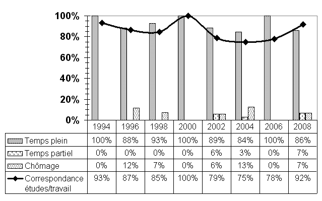 Pour un certain nombre d'entre eux, l'accès au marché du travail peut prendre un certain temps. Par contre: - ils travaillent presque tous; - les emplois correspondent à la formation; - les postes sont permanents; - les salaires sont élevés. Programme à majorité masculine. |