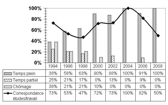 Avertissement: échantillon restreint Une personne poursuit des études à la maîtrise en sciences géographiques, une autre étudie à la maîtrise en sciences géologiques et la dernière à la maîtrise en océanographie. |