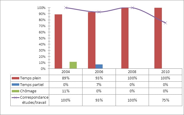 Avertissement : Tous les répondants disent avoir conservé ou réintégré leur ancien emploi. Par conséquent, toutes les variables relatives à l'emploi sont celles qui prévalaient avant leurs études de 2e cycle. Mentionnons, malgré tout, qu'ils étaient tous dans la trentaine et qu'ils avaient étudié à temps partiel.