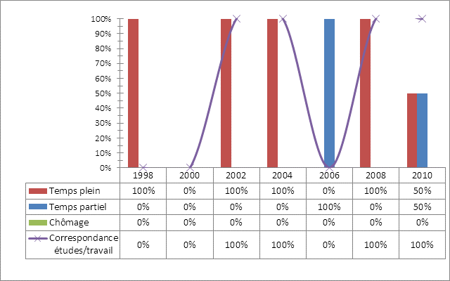 Avertissement : en raison du très petit nombre de répondants, aucune conclusion valable ne peut être tirée de ces données statistiques; d'autant plus qu'un répondant sur deux dit avoir conservé ou réintégré son ancien emploi.