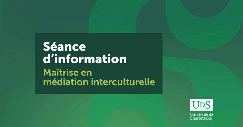 Apprenez-en davantage sur la maîtrise en médiation interculturelle, offerte au Campus de Longueuil, lors de cette séance d'information en ligne (sur Teams). Pour y participer, veuillez vous inscrire au moyen du formulaire en ligne: bit.ly/48OnTCd. Les renseignements pour vous y connecter sur Teams vous seront ensuite acheminés par courriel.