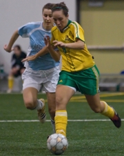 L’équipe féminine de soccer de l’Université de Sherbrooke a une fois de plus prouvé qu’elle serait une formation à surveiller cet hiver lors de la saison intérieure de soccer à 11 joueurs. À leur troisième rencontre samedi dernier au complexe multisport de St-Eustache, la troupe d’Annie Blais n’a laissé aucune chance aux Marlets de McGill en remportant l’affrontement par la marque de 5 à 0. Avec deux buts à ses deux derniers matchs, la défenseure Claudia Gosselin a été nommée joueuse de la rencontre. L’attaquante Josée Bélanger (2 buts) a mené l’offensive sherbrookoise, qui revendique maintenant 16 buts à ses trois premiers matchs.