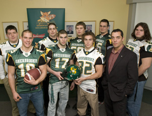 Trois joueurs des Volontaires du Cégep de Sherbrooke, doubles champions en titre du Bol d’Or collégial AA, feront leur entrée à l’UdeS en janvier, soit le spectaculaire porteur de ballon Gabriel Bernard-Perron, le joueur de ligne offensive format géant Christopher Belley-Rosa ainsi que l’excellent demi défensif Frédérick Jacques.