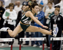 Sherbrooke, 17 janvier 2009 - Marie-Ève Dugas a repris là où elle avait laissé l’an dernier, samedi au Vert & Or Invitation, demeurant encore et toujours la reine incontestée du 60 mètres et du 60 mètres haies.
