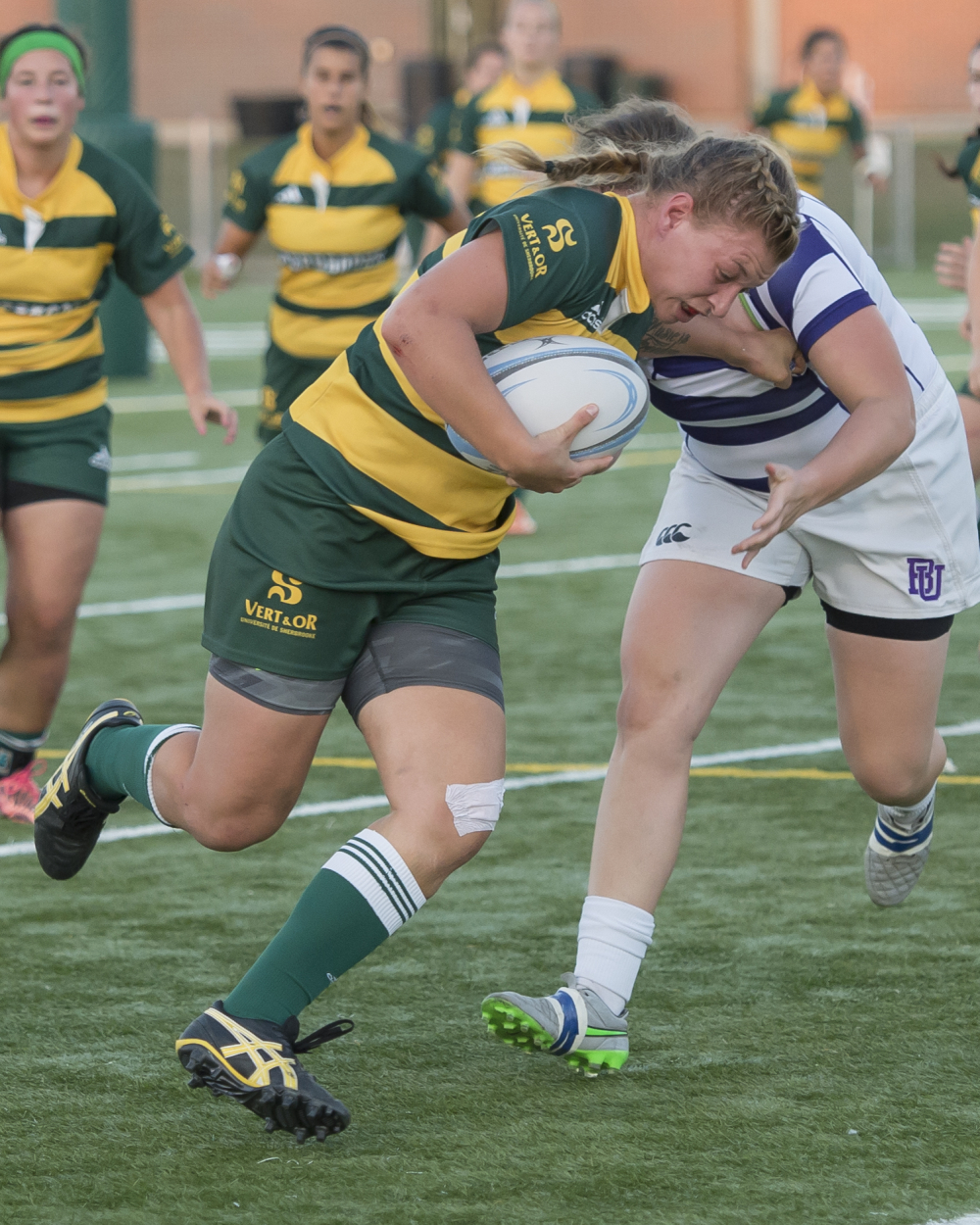 À l’inverse, les membres de l’équipe féminine ont connu un bien meilleur sort sur le terrain de leurs voisines, dimanche dernier. L’équipe, dirigée cette saison par le duo formé de Yohann Latka-Deparis et de Hugo Mora, est effectivement parvenue à s’offrir une victoire convaincante de 47-12 aux dépens des Gaiters de Bishop’s. La combativité et la cohésion des joueuses du Vert & Or ont mené la troupe à son premier gain en 2017. Catherine Lebrasseur a contribué à la victoire de son équipe en marquant deux essais au cours de la rencontre, pour un total de 10 points. La recrue Marie-Pier Fauteux, quant à elle, a été nommée la meilleure joueuse du Vert & Or principalement grâce à sa paire d’essais et son converti réussis.