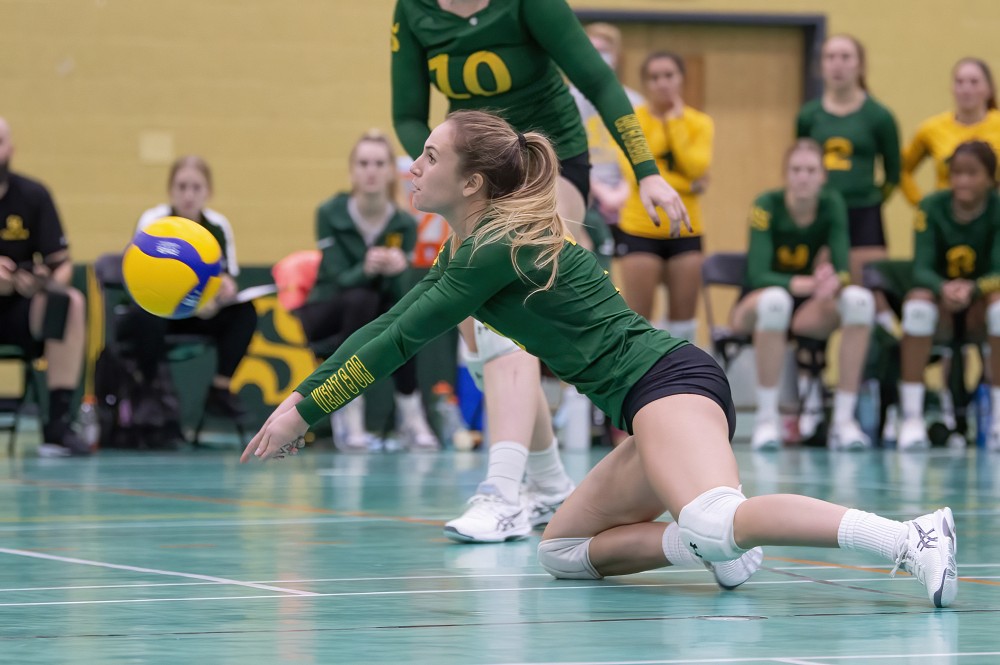 À l’amorce du deuxième set, les porte-couleurs du Vert & Or ne voulaient pas changer une formule gagnante et ont de nouveau pris les devants par plusieurs points. Elles menaient même 9-3 au premier tiers de la manche. Ce coussin s’est cependant aminci au fil des échanges, jusqu’à permettre à l’équipe adverse de prendre l’avantage 23-21. Les protégées de Rachèle Béliveau ont ensuite tenu le coup malgré les efforts du Vert & Or pour remonter la pente, ramenant ainsi les deux formations à égalité. Le pointage final de ce second set a été de 25-23 et le tableau indicateur indiquait alors 1-1 après deux sets.