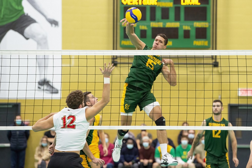 C’est cet après-midi que ça se jouait dans la demi-finale masculine RSEQ opposant le Vert & Or et le Rouge et Or. Après une victoire de 3-1 à domicile et une défaite par le même pointage samedi soir au Peps de l’Université Laval, le Vert & Or revenait au gymnase du Centre sportif Yvon-Lamarche pour le troisième et ultime match de cette série demi-finale, qui était une fois de plus disputé à guichets fermés.