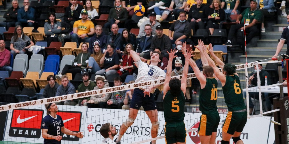 Les champions de la conférence de l’Ouest n’ont pas gagné 22 de leurs 23 rencontres cette saison pour rien, incluant une fiche immaculée de sept gains en séries éliminatoires. Ceux-ci comptent d’ailleurs cinq joueurs qui sont membres du programme de développement de Volleyball Canada. Ils ont maintenu la pression et ont confirmé leur place en grande finale dès le set suivant, malgré une belle remontée en fin de manche de la part des porte-couleurs de l’Université de Sherbrooke. Les livres se sont fermés à 25-21.