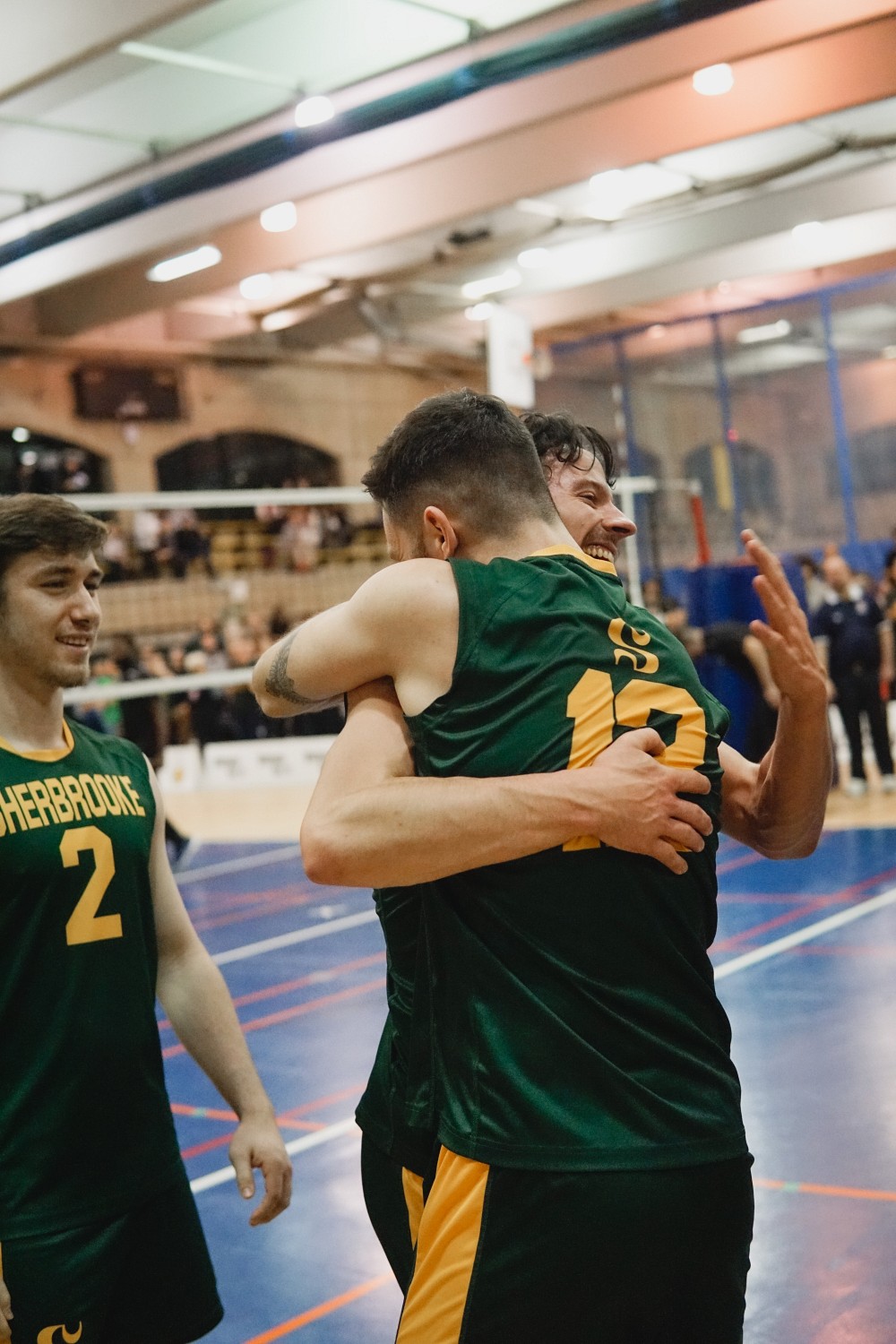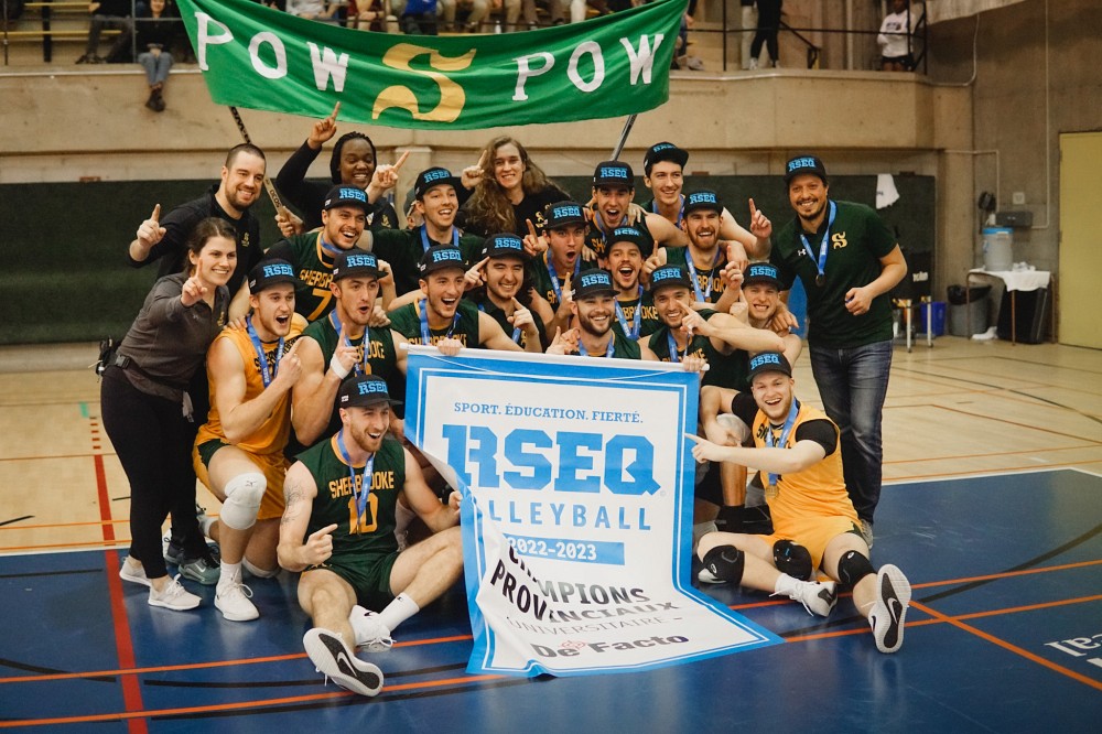 Après une victoire sur son terrain local en 5 manches le vendredi 3 mars, le Vert & Or est allé remporter le titre de champions provinciaux en 4 manches au CEPSUM, à Montréal. Malgré qu'elle était sur le terrain adverse, l'équipe masculine sherbrookoise a pu compter sur l'appui de plusieurs partisans du Vert & Or s'étant déplacés sur la grande île.