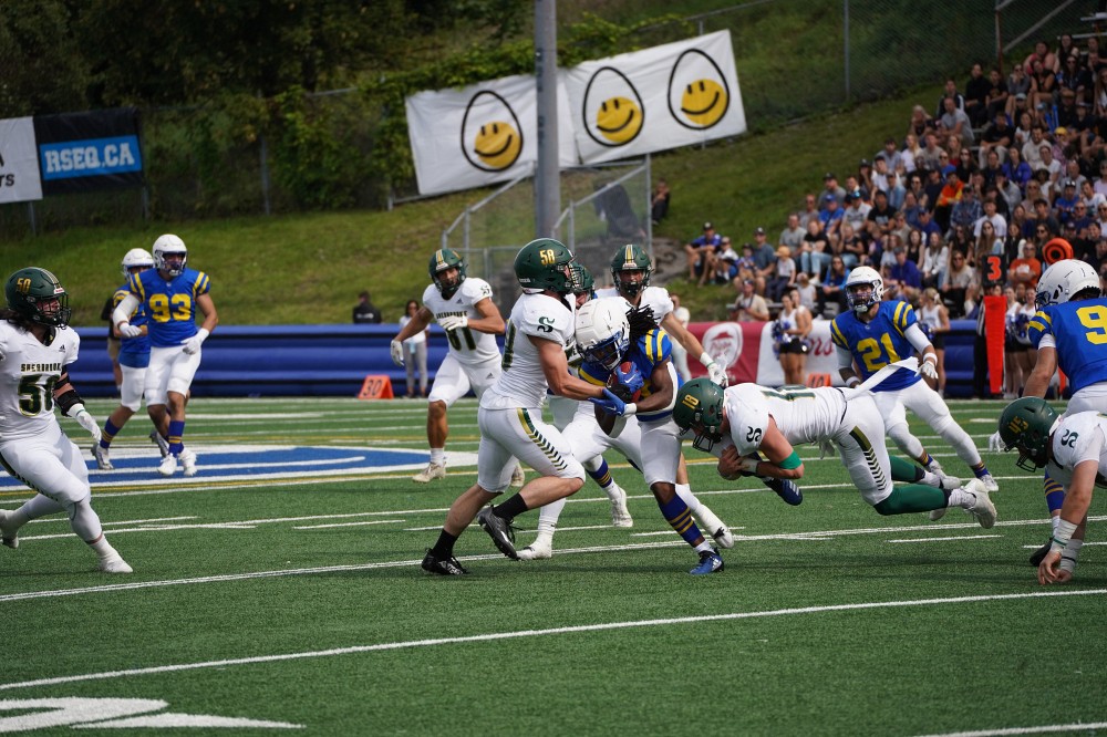 Le Vert & Or s’incline face à son adversaire au CEPSUM à Montréal samedi dernier. Ce dernier affrontement de la mi-saison a mené à la défaite des porte-couleurs de l’UdeS au pointage de 59-13. L’équipe s’opposait à la grande puissance que représentent les Carabins de l'Université de Montréal. Cette équipe dirigée par Marco Iadeluca connait un début de saison parfait avec 4 victoires en autant de matchs.